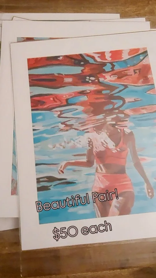 My paintings invite you into a quiet, meditative world beneath the surface—where sunlight dances on skin, water slows everything down, and movement softens into a peaceful rhythm.