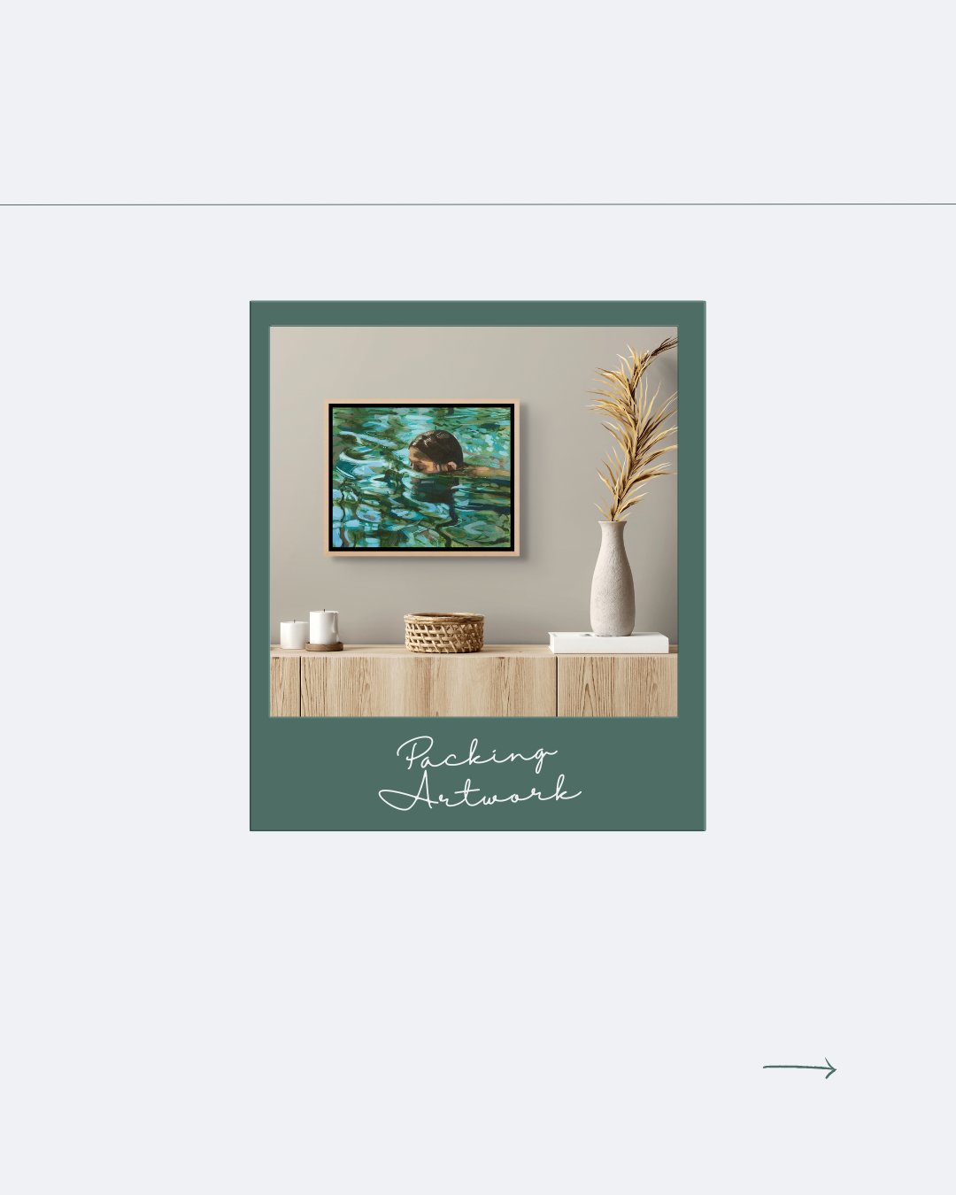 Every painting is wrapped in a moisture-resistant layer with cellophane wrap. This keeps dust, humidity, and surface scuffs away.