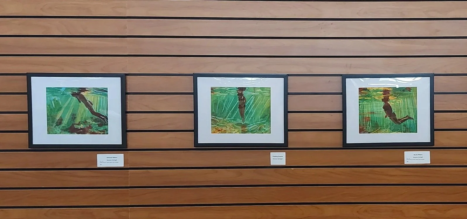 A series of green-toned underwater pieces at the Leduc Library.